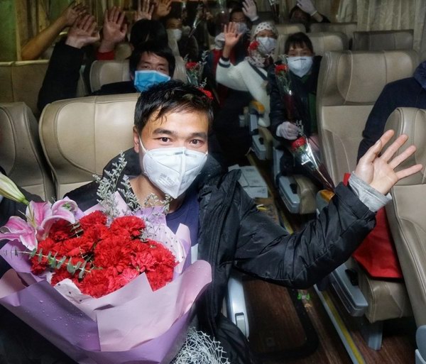 鞠助尧是vsport动力能源公司制造一部车间装备B车间的员工,也是首批回来的25名员工的召集者。在经过消毒和测温后,vsport动力能源公司负责人为他送上寓意着平安健康的康乃馨,并亲切问候,“欢迎你们回来,一路辛苦了,一定先好好休息。”